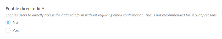 The new Direct Edit option allows contacts to modify their data directly, without an identity verification step. This feature was highly requested, as the verification step was often experienced as unnecessary. Previously, only support could disable this via PHP adjustments. Now, this setting can be easily toggled on or off in the plugin configuration.