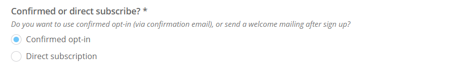 By default, Spotler MailPro uses a double opt-in process. If you want to use the Direct Subscribe option, you must enable it in each plugin individually.