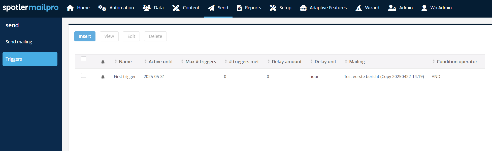 In Spotler MailPro, you can create automated follow-up actions using triggers. Triggers respond to subscriber behavior in an email, such as opens or clicks, and can perform a range of actions. This is useful for setting up event-driven campaigns like reactivations or birthdays.