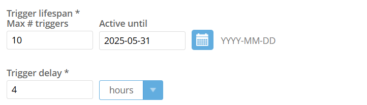 Define the trigger’s lifespan and any delay before it activates: