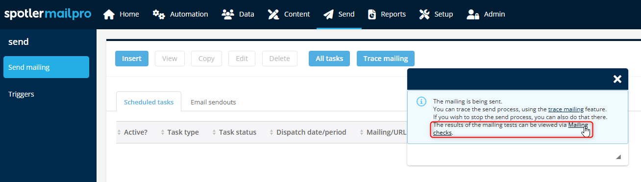 Do you want to see the screenshots for which you selected Default in the previous step? Then after sending, click Mailing checks.