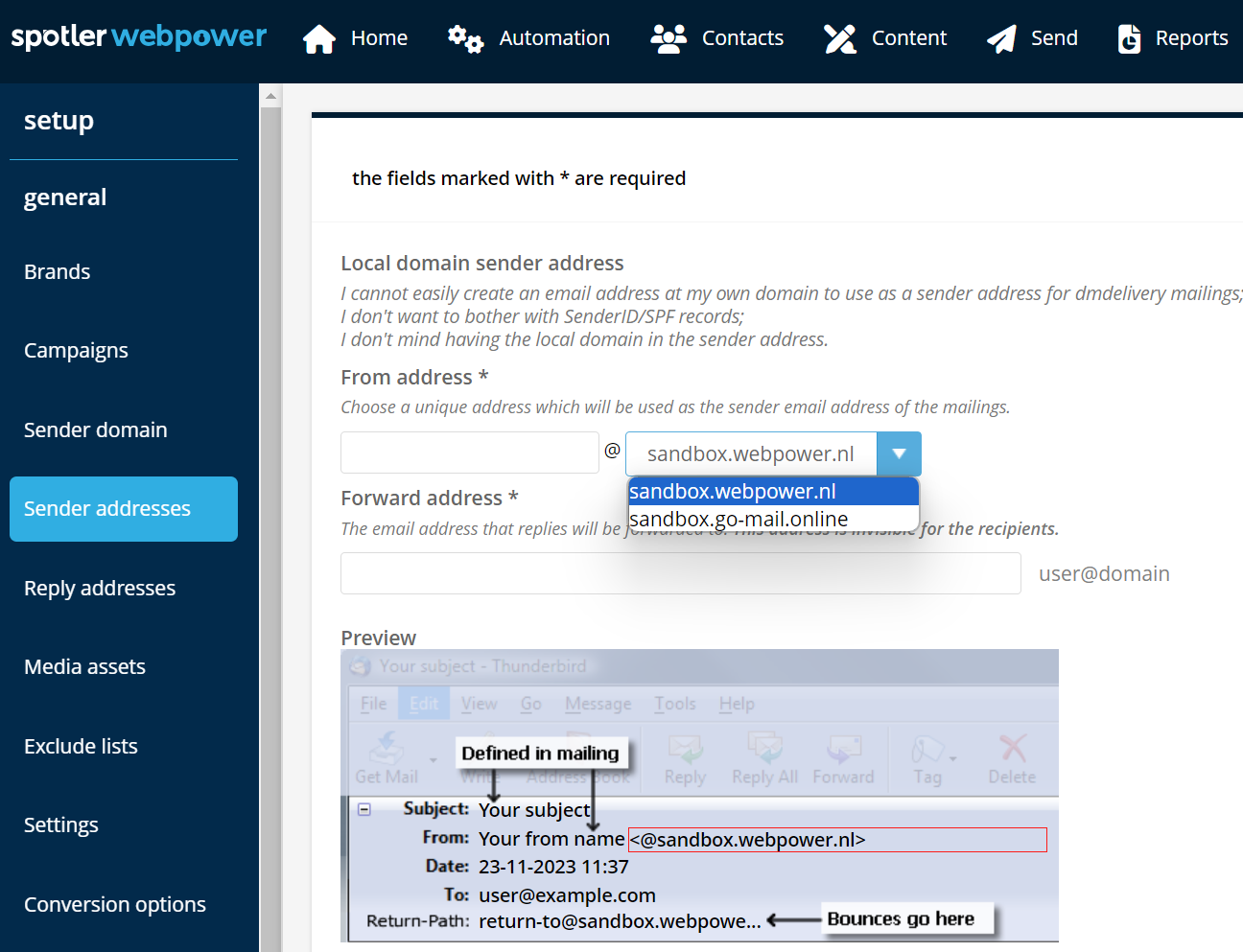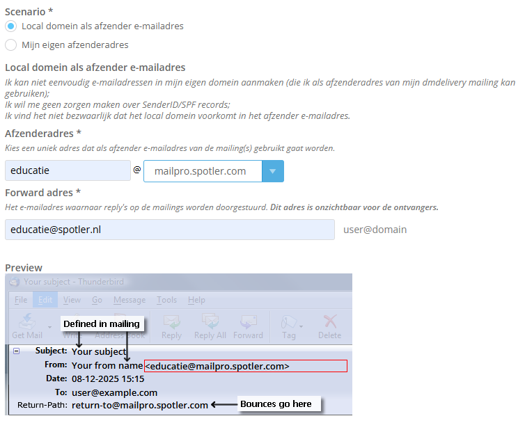 - Controleer welk afzenderadres in gebruik is in je Spotler MailPro-licentie