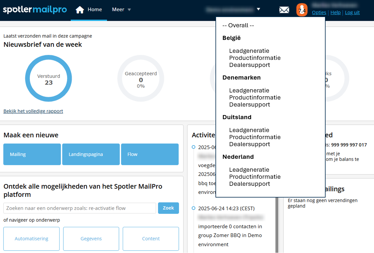 Werk je in dit onderdeel van Spotler MailPro? Dan zijn de aanpassingen van toepassing op de volledige licentie. Je wijzigingen worden dus doorgevoerd voor alle campagnes binnen je omgeving, ongeacht waar je je precies bevindt.