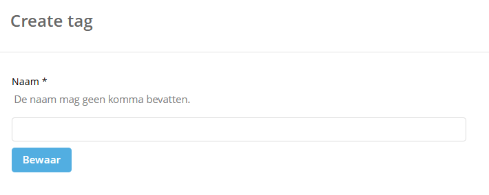Om een tag toe te voegen klik je op Invoegen en voer je een naam in voor de nieuwe tag. Klik daarna op Bewaar.