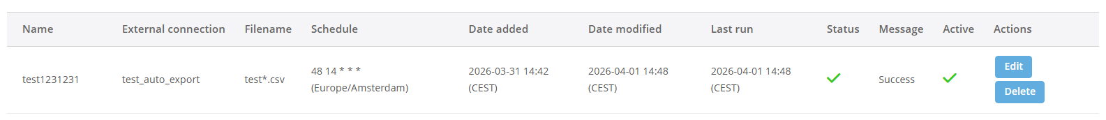 Om dit te gebruiken, stel je zowel de optie in bij de import als een resultaatpad in bij de externe connectie. Bestandsnamen kunnen dynamisch worden opgebouwd, bijvoorbeeld met een datum.