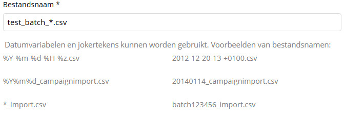 Het is nu mogelijk om een wildcard (*) te gebruiken in de bestandsnaam bij het ophalen van bestanden. Hierdoor kan de import planner bestanden verwerken met dynamische naamgeving, zoals batchnummers.