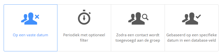- Startstap “Wanneer een contact voldoet aan filter” verwijderd en samengevoegd tot “Periodiek met optioneel filter”
