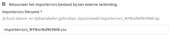 Je kunt instellen dat importfouten worden teruggestuurd naar de externe connectie. Hierdoor kunnen externe systemen automatisch fouten verwerken.